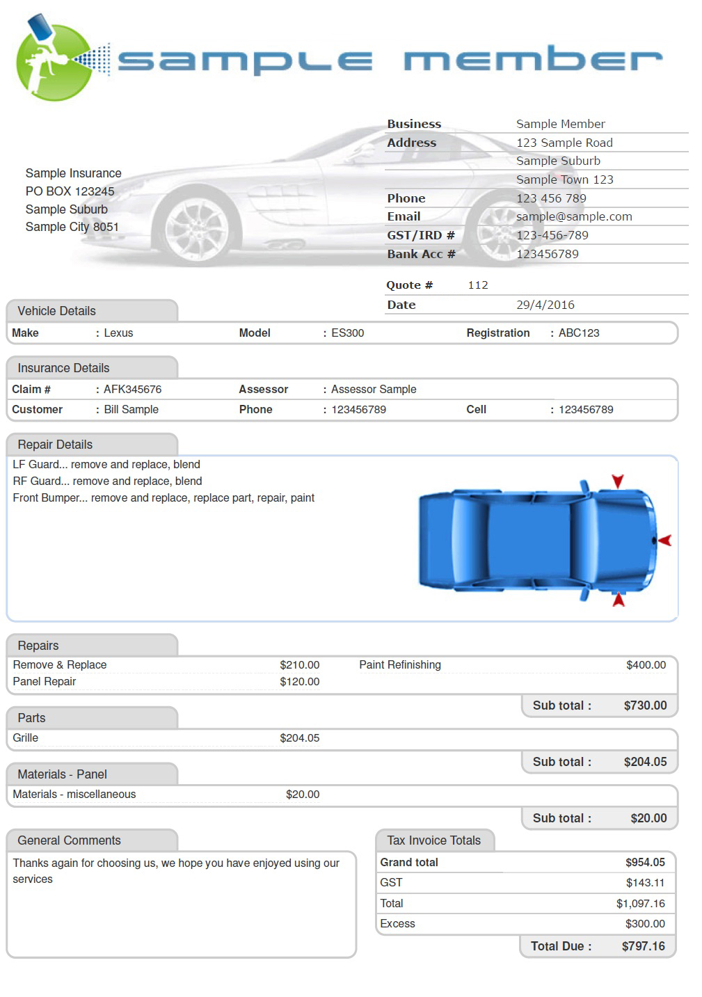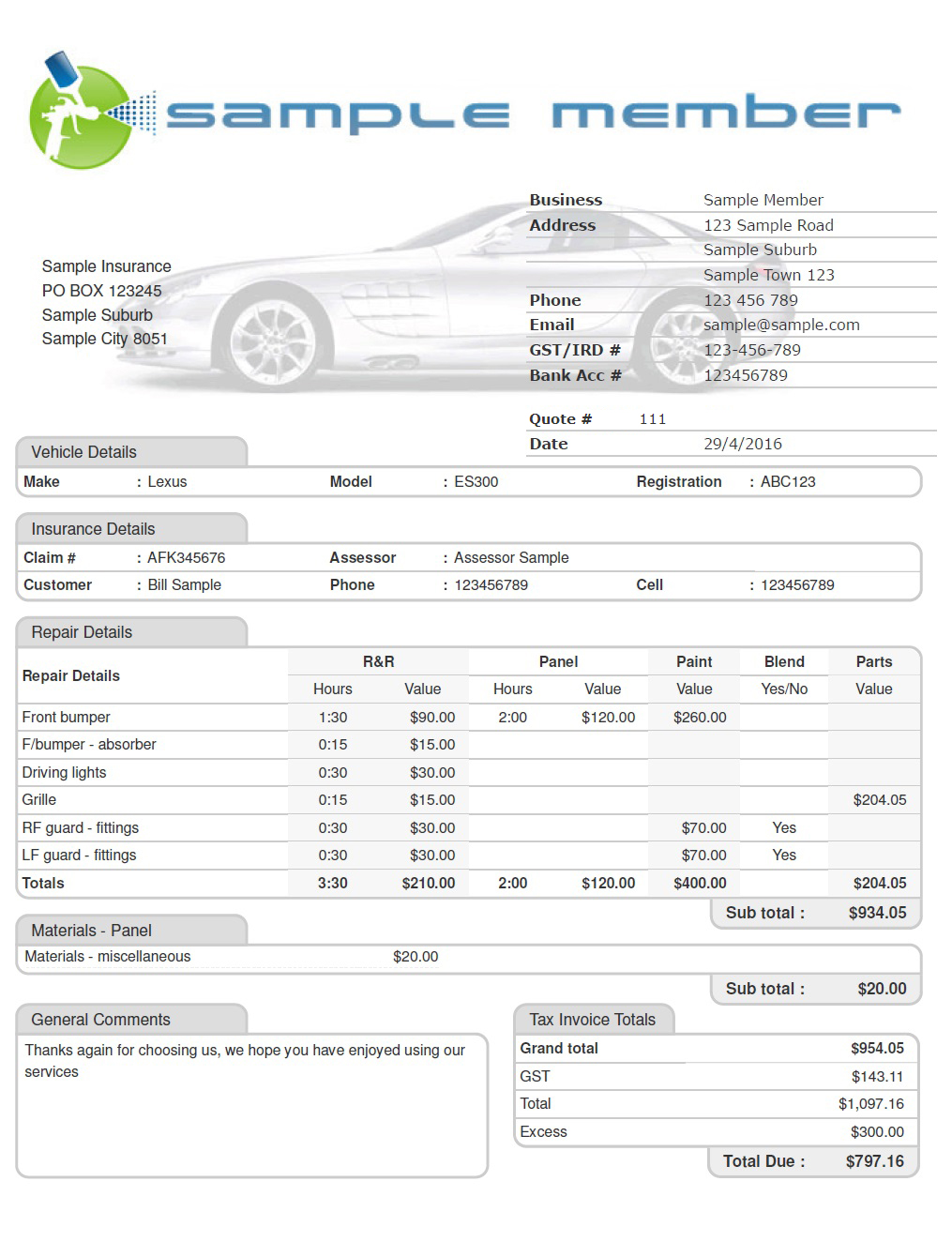 Quoting is an area where Panel Quote shines. It is so simple and fast that anyone new to Panel Quote can master quoting in under 15 minutes. There are two options to quickly and easily create professional looking quotes, the Quick Quote and the Full Quote. There are 15 vehicle types to choose from plus a Custom Quote feature allows you to create quotes for any vehicle or job type you can think of.